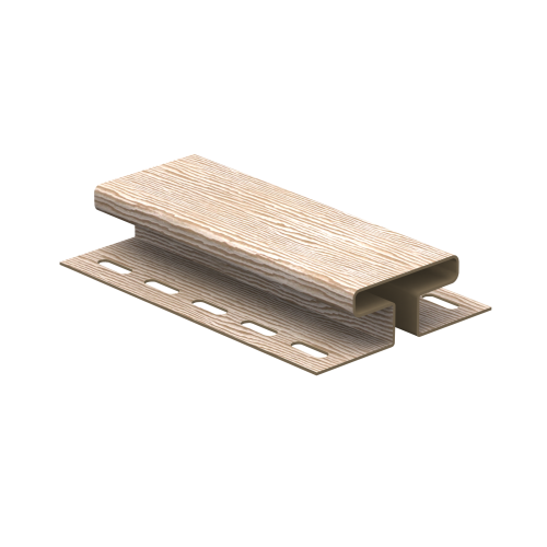 H-профиль или соединительная планка для сайдинга служит для стыковки панелей по длине. Учитывая, что планка устанавливается вдоль обрешётки под сайдинг, для неё на каркасе монтируются дополнительные горизонтальные профили через 40-50 см друг от друга. Длина её составляет 3050 мм и крепится она произвольно.